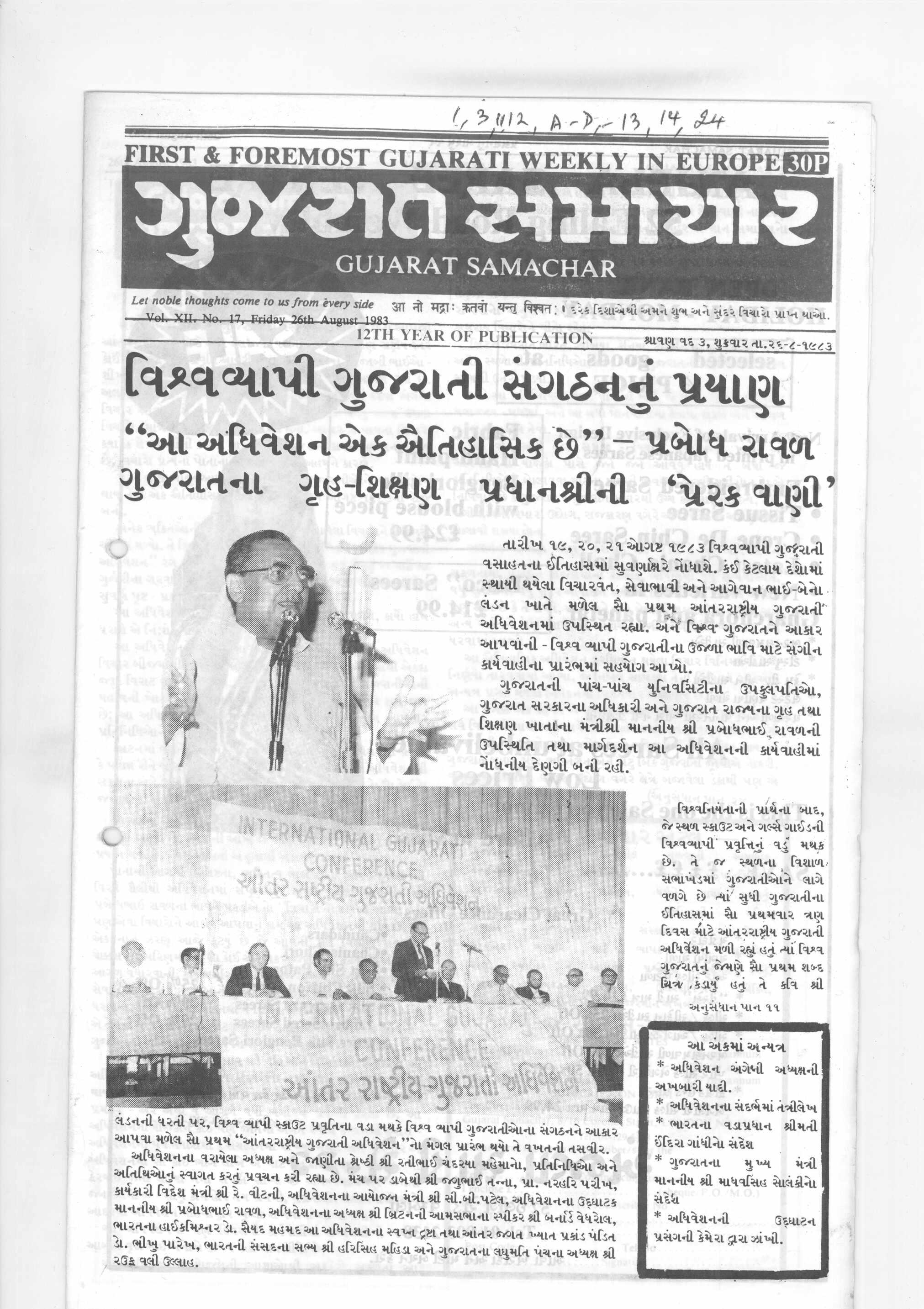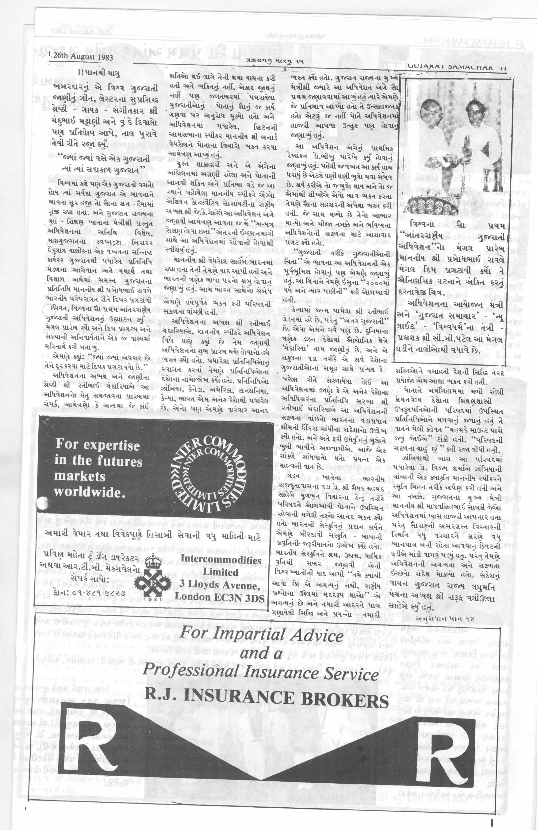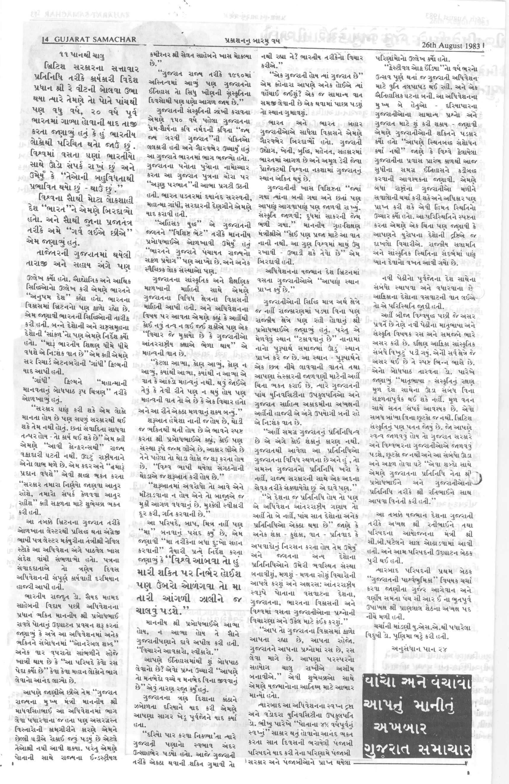Gujarat Samachar 26.08.1983 Edition