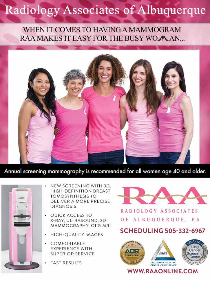 3 Advertising 30 AA Events & Tents 163 ABQ Childcare ..........................................................................50, 74 Albuquerque Associated Podiatrists 56 Albuquerque Florist 71 Albuquerque Implant & Periodontal Consultants 44, 45 All World Travel 20 Animal Humane New Mexico 189 Bosque School 67 Brew Lab 101 ................................................................................... 27 Bubba's 33 171 California Closets 39 CNM 124 Contigo Compounding Pharmacy 88 Cornucopia Adult & Family Services ........................................126 CPR 2U NM 128 Dermatology & Skin Cancer Center of New Mexico 52 Dermatology of New Mexico 55 Dr. Laura Anne Snyder 54 Dr. Monica Boehmer, DDS ........................................................... 58 Duke City Software 197 Elite MD 25 Elizabeth Facial Plastic Surgery 79 Exhibit Solutions of New Mexico 11 Eye Associates of New Mexico 19 Fairwinds Rio Rancho 128 Family Medicine PC ....................................................................... 60 Halo Med Spa 70 Home Care Assistance 127 Houston Wholesale Cars LLC 6, 7 Hydro Bar By Kangen 185 Immanuel Lutheran Schools 69 Indian Pueblo Kitchen 33 Inn of the Mountain Gods............................................................. 13 International Protective Service 42, 43 Investments 528 187 Jericho Nursery 148 Keller Williams - Inspire Group 82 Kubota Tractor Inc 23 Leadership New Mexico 51 Lee Michaels Fine Jewelry ............................................ Back Cover M'tucci's Italian 181 Merry Maids 4, 5 Mesa Tractor 17 New Mexico Orthopaedic Surgery Center 37 New Mexico Pain Associates ........................................................ 58 New Mexico Sports & Wellness 202 New Mexico United 190 New Mexico Vascular 53 Optimum Human 173 Optum .............................................................................................. 85 Osuna Nursery 68 Paradise Hills Country Club 186 Power Ford 2, 3 Presbyterian Medical Group 87 Prime IV Hydration and Wellness 180 Quezada’s Comedy Club & Cantina 153 Radiology Associates of Albuquerque......................................... 31 Revel Entertainment 168 Rio Grande Credit Union Inside Front Cover, Inside Back Cover Rio Rancho Education Foundation 59 Route 66 Cleaners 176 Rudy's Country Store & BBQ 165 Sagebrush Church........................................................................... 61 Satellite Coffee 177 Scalo Northern Italian Grill 166 Simply Real Estate - Francesca Rodriguez 46 Simply Real Estate - Jennifer & Vinay Rodgers 47 Slate Street Billiards 170 Smiles by Design 183 Sobremesa ......................................................................................203 Southern Glazer's Wine & Spirits 157 Southwest Chocolate and Coffee Festival 179 Southwest Women's Oncology 8, 9 Southwestern HR Consulting 86 Spa at Chaco .................................................................................... 40 The Cleanery 188 The Doc Spa 15 The Education Plan 133 The Fertility Center of NM LLC 73 The Grove Cafe & Market............................................................167 The Juliette Eye Institute 77 The Remedy Day Spa 182 Tito’s Handmade Vodka 174 Two Fools Tavern 175 University of New Mexico Athletic Department 205 UNM Health 35, 83 Velocity Clinical Research ............................................................. 49 Western Dermatology Consultants, PC 57 WisePies 201 Women's Specialists of New Mexico 62 Youth Development Inc. (YDI) 48
