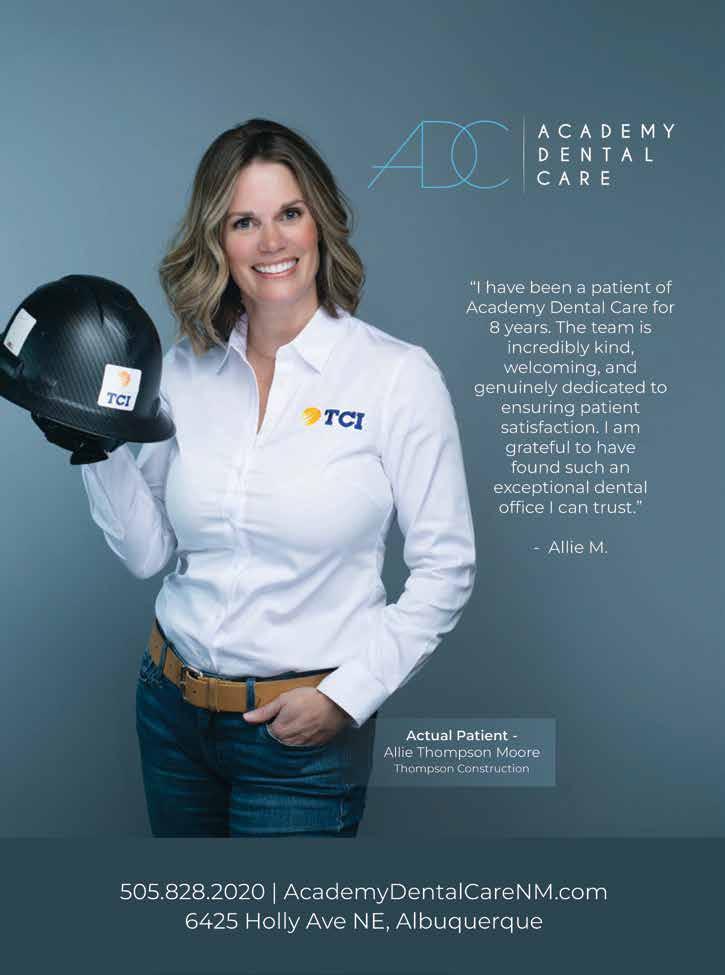 By the way, here’s a nod to Addie Siembieda, who oversaw our dentists survey. In job title, she was our summer intern, But she handled her writing and marketing assignments more like a seasoned journalist (no surprise that her dad, Jeff Siembieda, is one of New Mexico’s most decorated sports journalists of all time, and the Executive Director of the New Mexico Bowl). Addie, a 2024 Albuquerque Academy grad, is heading back to the University of Michigan for her sophomore season, but promised to do some freelance writing for ATM from Ann Arbor—but only if schoolwork and, ahem, campus fun don’t