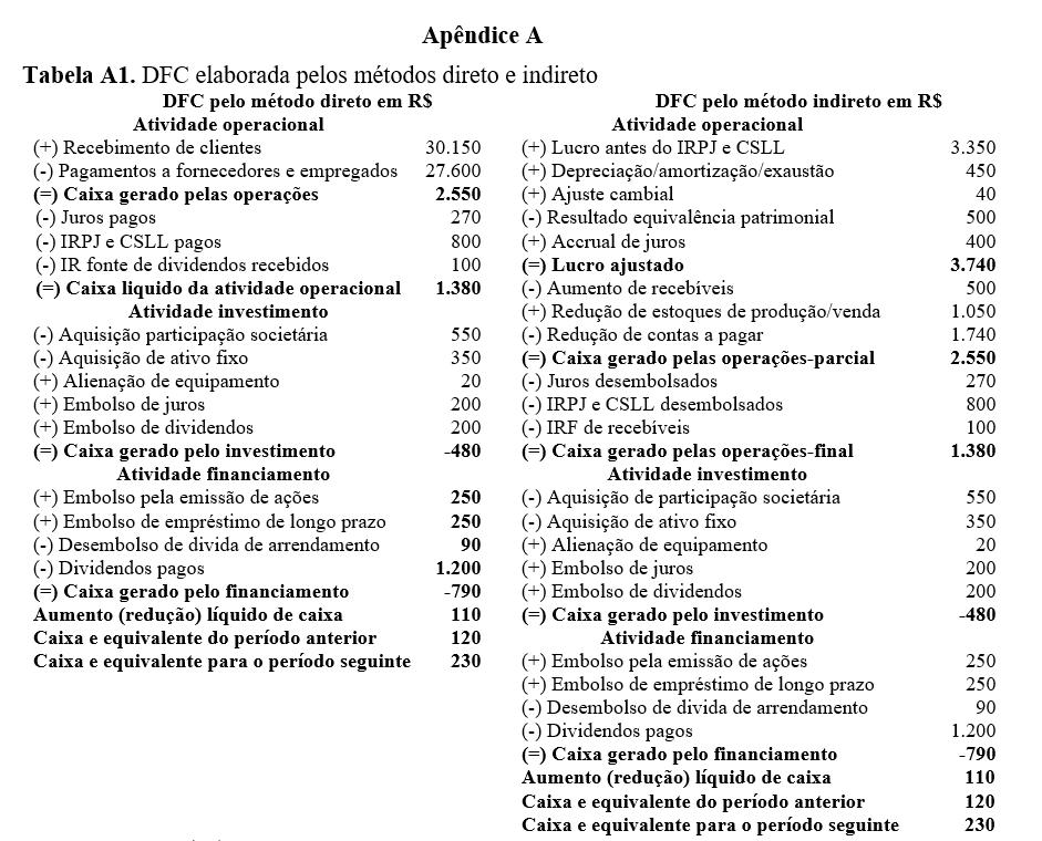 As the model is deterministic and the flows of the three activities refer to the past period, both by the direct method and the indirect method, the results do not contribute to future cash forecast, but the informational content of the CFS by the indirect method signals managers and operators better aid to decisionmaking because it provides more comprehensive informational content.