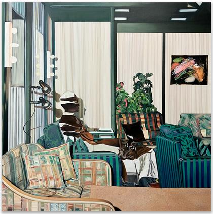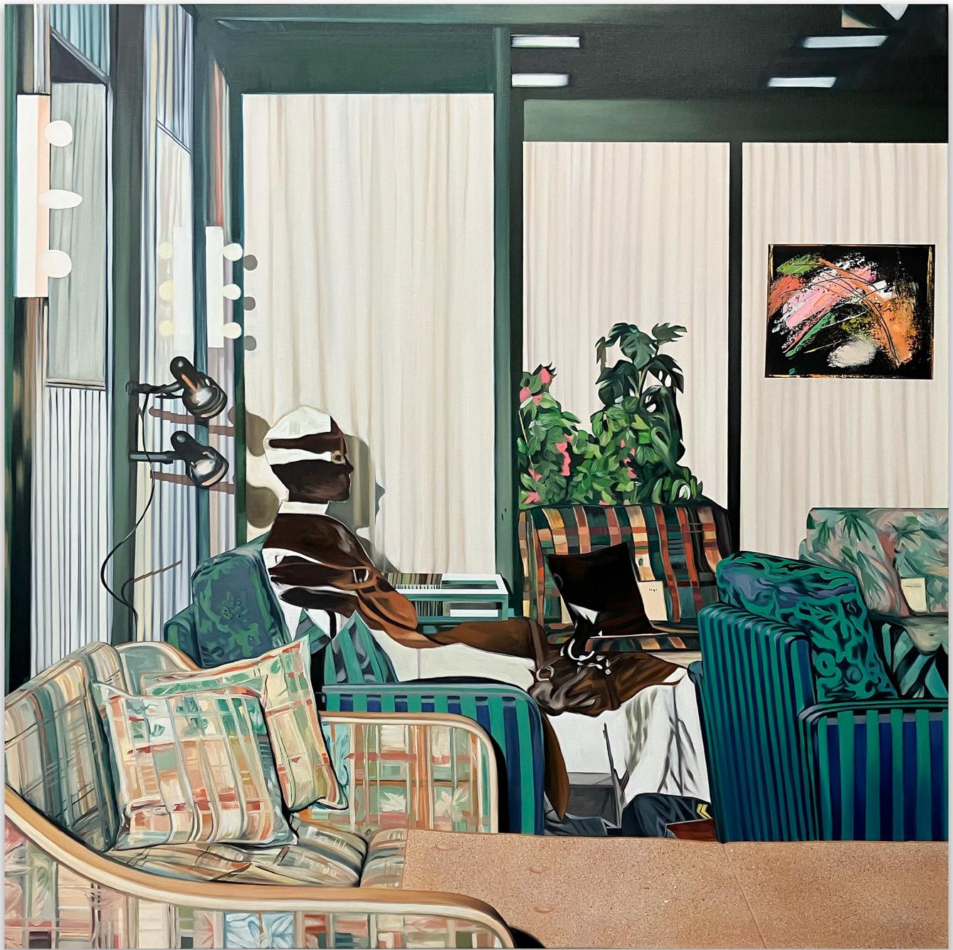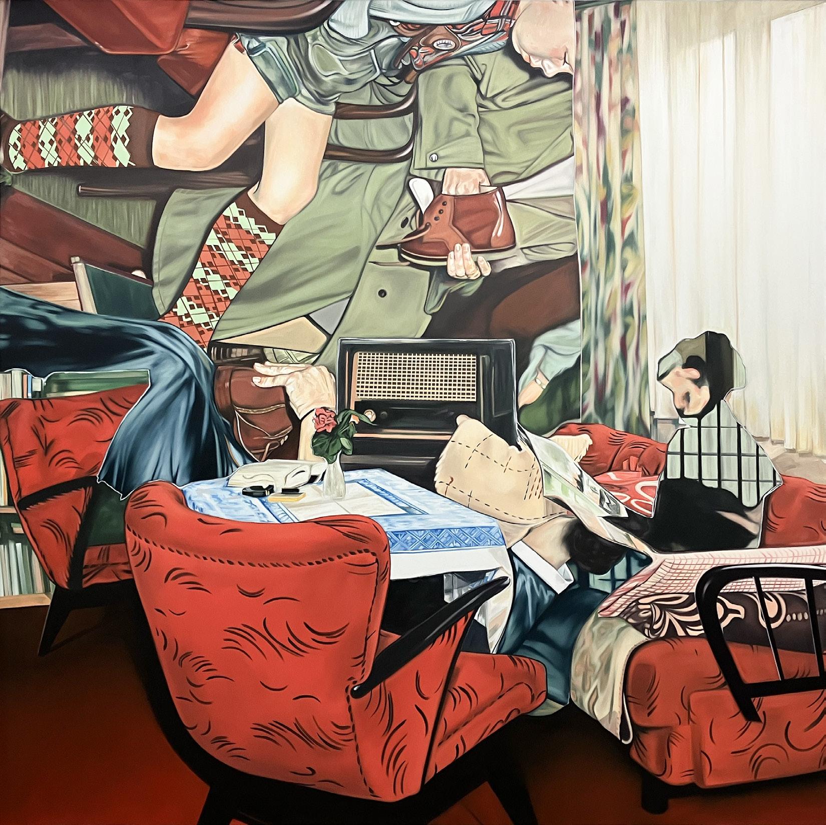 En la sala, el artista propone una serie de fricciones que buscan desestabilizar nuestros automatismos perceptivos. Es decir, la forma habitual en que percibimos imágenes materiales o mentales, siguiendo códigos aprendidos. Una de las más evidentes es la construcción de sus “escenarios”, que en este caso imitan interiores domésticos, espacios que niegan la idea de que estamos en la galería y al mismo tiempo la reafirman. Esta fractura hace que la galería misma