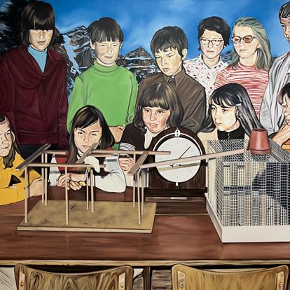 “Niños mirando a la rata”, 2025 Óleo sobre lienzo