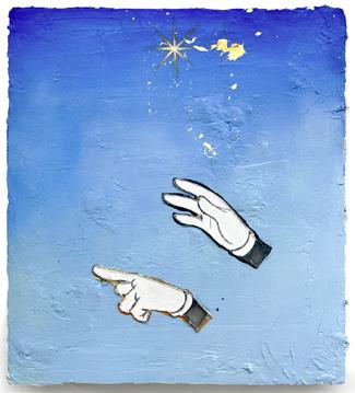“Work (hand), Ideology (eye), and Narrative (finger)”, 2024 Óleo sobre lienzo