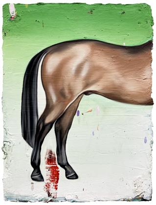Regreso a la figura sentada, que antes solo había visto de pasada. Ahora noto que su contorno alberga un caballo volteado. Como el caballo que botó a mi mamá. La figura ya no es la misma que antes, está cargada de todo lo que acabo de recorrer. Le percibo una expresión, un sentir en su reposo a pesar de no tener rostro. Me siento a la espera, como si aguardara lo inevitable. Como cuando la incertidumbre se volvió innegable hace trece años.