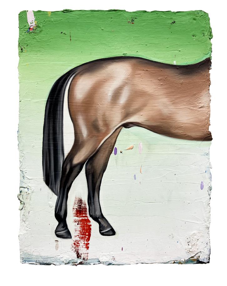 Al ver a Emmanuel trabajar de cerca, cuesta obviar que su práctica también está permeada por una serie de paradojas internas: critica la imagen mientras la produce; pone en duda la capacidad de la pintura, pero insiste en pintar; intenta desaparecer de la obra, pero de manera inevitable se hace presente. Él se manifiesta en la síntesis de los patrones y en la interpretación de las texturas, en la manera en que pinta lo que él ve, que no es necesariamente lo que es, y en la fricción que surge al pasar de un medio a otro, de la imagen técnica al canon histórico de la pintura. Pero, sobre todo, se pronuncia en el primer gesto de selección. Es ahí donde se establece la relación entre imagen y creador, definiendo las posibilidades de lo que vendrá a ser creado.