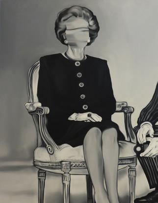 “Un caso de histérica ceguera histórica (o la masculinización de la política) , 2025 Óleo sobre tela 61 x 47 cm