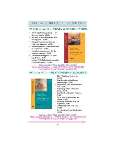 (Excerpted from Video 5V-8/26, 8/29, 9/2/00) Relationships & Cocreation — DVD-10 (DVD) or AV-10 (VIDEO) $30 Running time: 1 hour (To order, see page 32). 47