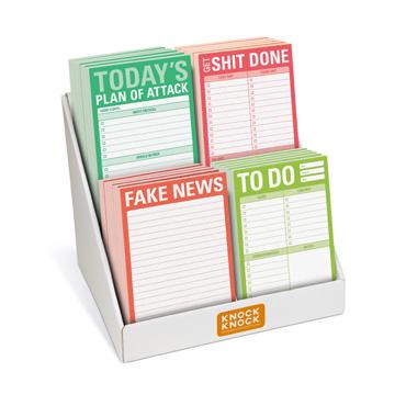 No. 9781601063472 Crap £2.95 No. 9781601064042 Deal With This £2.95 No. 9781601064301 Seriously? £2.95 No. 9781601065056 High Five £2.95 SPECS: 100 sheets with repositionable adhesive | SIZE: 3 x 3 inches; 7.6 x 7.6 cm | PKG: Shrinkwrapped | INNER: 8 | PRICE: £2.95 STICKY NOTES SPECS: 60 sheets with repositionable adhesive | SIZE: 4 x 6 inches; 10.2 x 15.2 cm | PKG: Shrinkwrapped | INNER: 6 | PRICE: £5.95 No. 9781601068811 To Do £5.95 No. 9781683492108 Fake News £5.95 No. 9781683490517 Get Shit Done £5.95 No. 9781601067753 Today’s Plan of Attack £5.95 GREAT BIG STICKIES TO ORDER: email info@abramsandchronicle.co.uk • or click here for representation pagePG 37