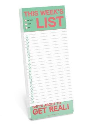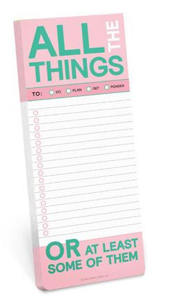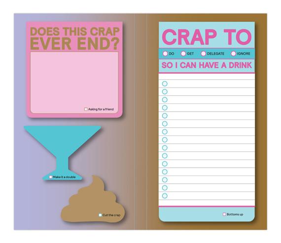 No. 9781683493082 All the Things £4.95 No. 9781683493068 Today’s List £4.95 No. 9781683493075 Groceries & Shit £4.95 No. 9781683493099 Crap to Do £4.95 SPECS: 50 sheets; adhesive binding | SIZE: 3.5 x 9 inches; 8.9 x 22.9 cm | PKG: Shrinkwrapped | INNER: 6 | PRICE: £4.95 MAKE-A-LIST PADS No. 9781683493396 Stuff To Do Today £ 4.95 No. 9781683493419 Hot List £ 4.95 No. 9781683493402 You Got This £ 4.95 No. 9781683493426 Have a Super Day £ 4.95 No. 9781683493679 This Week’s List £4.95 No. 9781683493686 My Legit Goals £4.95 TO ORDER: email info@abramsandchronicle.co.uk • or click here for representation pagePG 26