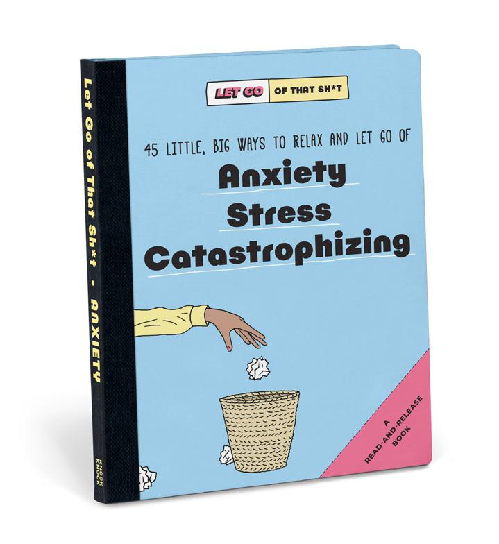SPECS: Hardcover, 96 pages; full-color throughout, 15 illustrations | SIZE: 4.25 x 5.75 inches; 10.8 x 14.6 cm INNER: 4 | PRICE: £9.95 Let Go of That Sh* t: Anxiety NEW! No. 9781683493785 Let Go of That Sh*t: Anxiety £9.95 TO ORDER: email info@abramsandchronicle.co.uk • or click here for representation pagePG 4 NEW! AVAILABLE NOW 45 PERFORATED TEAR-OUT SLIPS TO WRITE ON & RELEASE— LITERALLY!