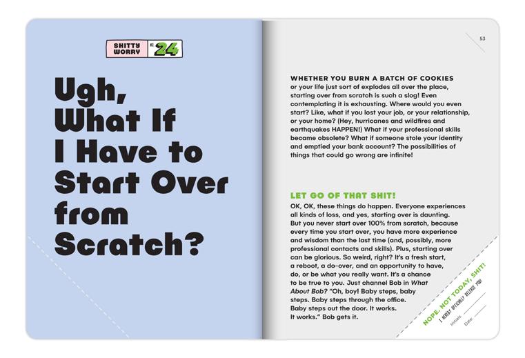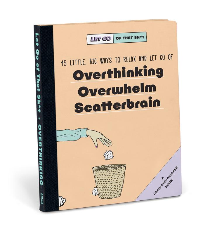 Let Go of That Sh* t: Overthinking NEW! No. 9781683493792 Let Go of That Sh*t: Overthinking £9.95 SPECS: Hardcover, 96 pages; full-color throughout, 15 illustrations | SIZE: 4.25 x 5.75 inches; 10.8 x 14.6 cm INNER: 4 | PRICE: £9.95 TO ORDER: email info@abramsandchronicle.co.uk • or click here for representation pagePG 5 NEW! 45 PERFORATED TEAR-OUT SLIPS TO WRITE ON & RELEASE— LITERALLY! AVAILABLE NOW