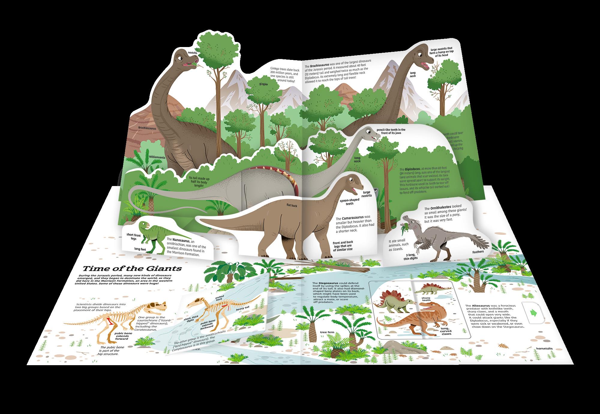 The world of tyrannosaurs, raptors, and pterosaurs comes alive in this oversize guide to prehistoric creatures of the land, sea, and air! With detailed information thoroughly researched and vetted by experts, this book includes more than 50 flaps, pop-ups, pulltabs, and rotating wheels. Turn a page for a pop-up of towering dinosaurs, rotate a wheel to see a Quetzalcoatlus take flight, and lift a flap to compare animal skeletons for an immersive and satisfying hands-on learning experience!
