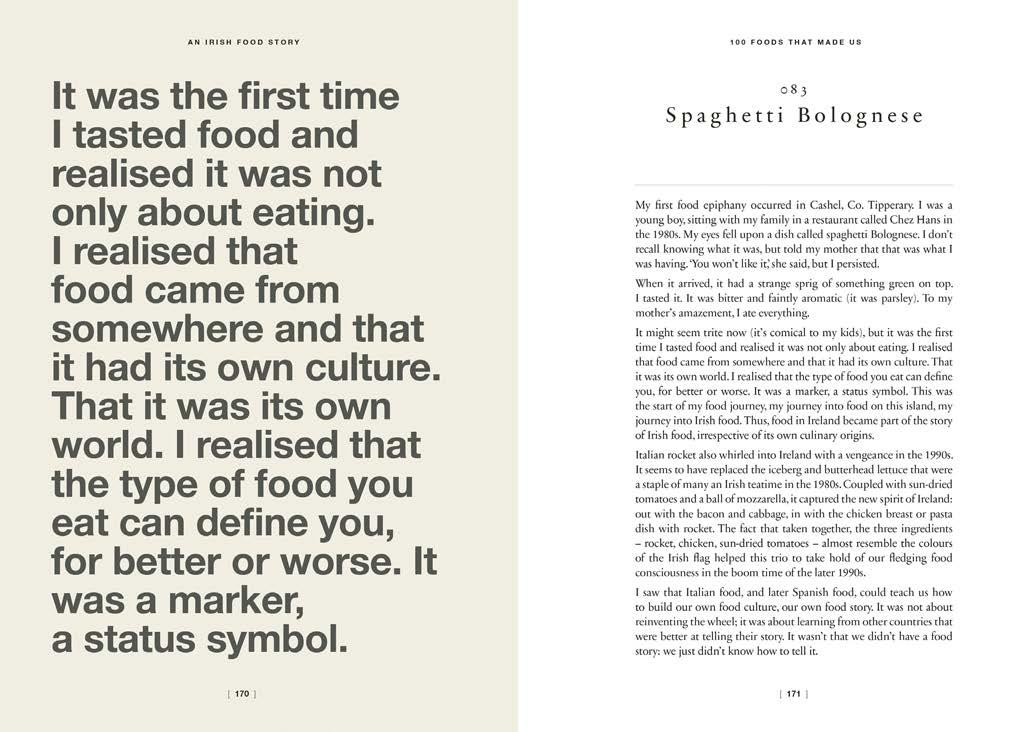 The book is structured around the unique way we eat in Ireland, broken up into the five mealtimes of breakfast, lunch, dinner, tea and supper. There is also a chapter dedicated to pork and bacon, inspired by his childhood growing up over the family butcher shop.