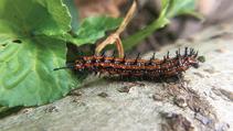 Following my own often-stuffy nose into scent explorations usually starts with keeping my eyes open for breaks in the usual patterns of my garden, a routine that led me to my first epic scatological show. Though I’d handled the doody duty on more than one occasion at local nature festivals, explaining to toddlers the nuances of coyote and deer poop, getting all up in the backside business of our wild neigh bors had long been at the bottom of my to-do list. My five-decade-long streak of innocence about such indecorous matters came to a halt one September afternoon when I rounded a corner to water some seedlings and found an orange-and-black cat erpillar resting on a log. Certain that this butterfly baby was the off spring of a mother variegated fritillary who’d laid eggs in front of me a few weeks before, I flattened myself at ground level to watch her through my macro lens. Soon the caterpillar was booking it over to a nearby violet, where she chowed down heartily and offered a close-up view of a bulge mov ing along her body as she ate. It wasn’t long before the remnants of the meal reached their natural conclusion, and what happened next was so fast and startling that didn’t trust my eyes. The caterpillar