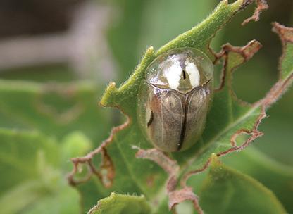 Upon closer inspection, Keefover-Ring realized that the tortoise beetle larvae were not only eating the plants but taking advantage of their defenses to make armor of their own. “I never knew anything about it, and I started looking at these cool little larvae with—as one of my professors called it— a club of crap on their little fork.”