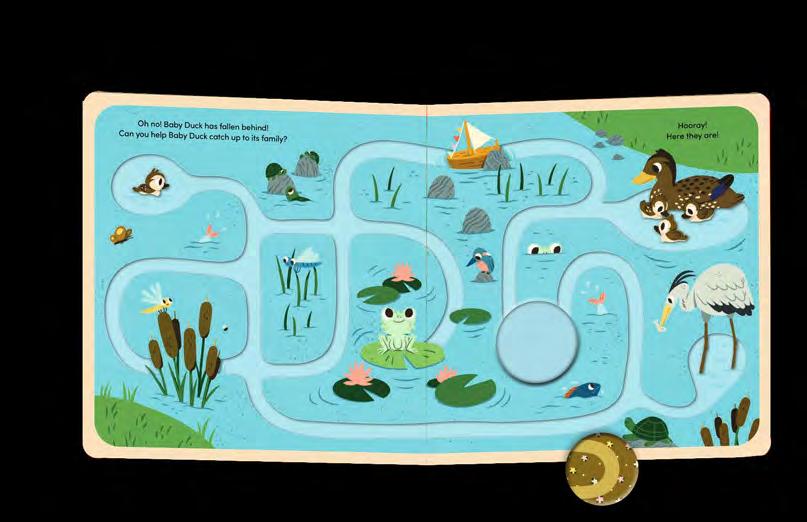 The baby animals have places to go, but they need help! Baby Duck wants to catch up with its family, Baby Bear wants its favorite honey snack, and more! This sturdy large-format board book includes three double-sided maze pieces that are used to complete the paths for the little critters . Children develop problem-solving skills and learn to focus as they help the baby animals find their way And when they’r e done, readers can store the maze pieces in the convenient built-in slots .