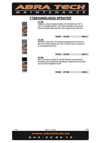 YTBEHANDLINGS SPRAYER AT 450 Kallgalv av absolut högsta kvalitet och innehåller över 92 % zink i den färdiga ytfilmen. Den höga zinkhalten binds genom luftens fuktighet elektrokemiskt och övergår till järn eller stål.