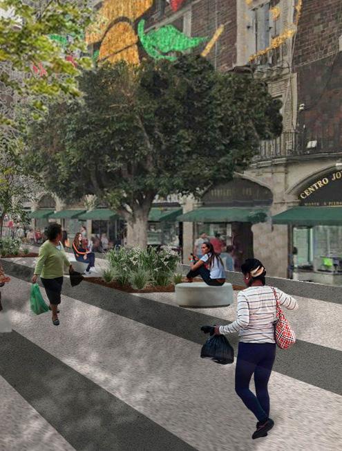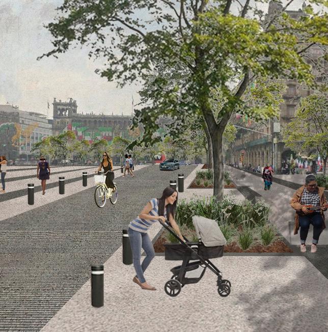 The proposal consists of a single platform in the first square of the Historic Center with a design that promotes all modes of transport but prioritizes pedestrian mobility. Additionally, shadow and rest spaces are placed.