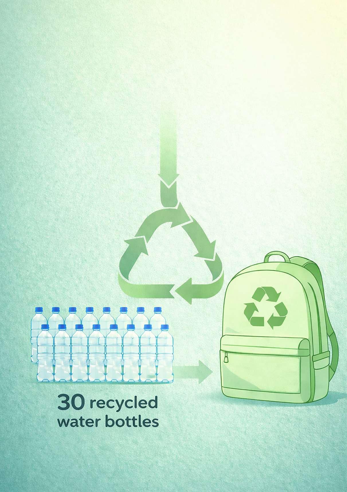 The rPET monochrome series is a unique and eco-friendly suggestion because its fabric is made from recycled plastic bottle material! And how is that done? The plastic bottles are collected and cut into pieces which are then processed into small flakes which are then transformed into fibers with which the fabric of a must team... monochrome is made!