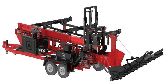 • Monster log splitter with a 30’ frame and capacity to split logs as wide as 5’ in diameter and as long as 12’; 184,000 pounds of splitting force to split logs that cannot be processed so they can be fed onto a processor or into a wood chipper