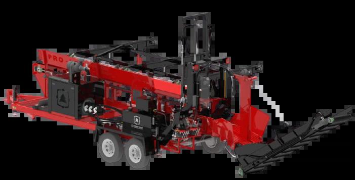 • Monster log splitter with a 30’ frame and capacity to split logs as wide as 5’ in diameter and as long as 12’; 184,000 pounds of splitting force to split logs that cannot be processed so they can be fed onto a processor or into a wood chipper