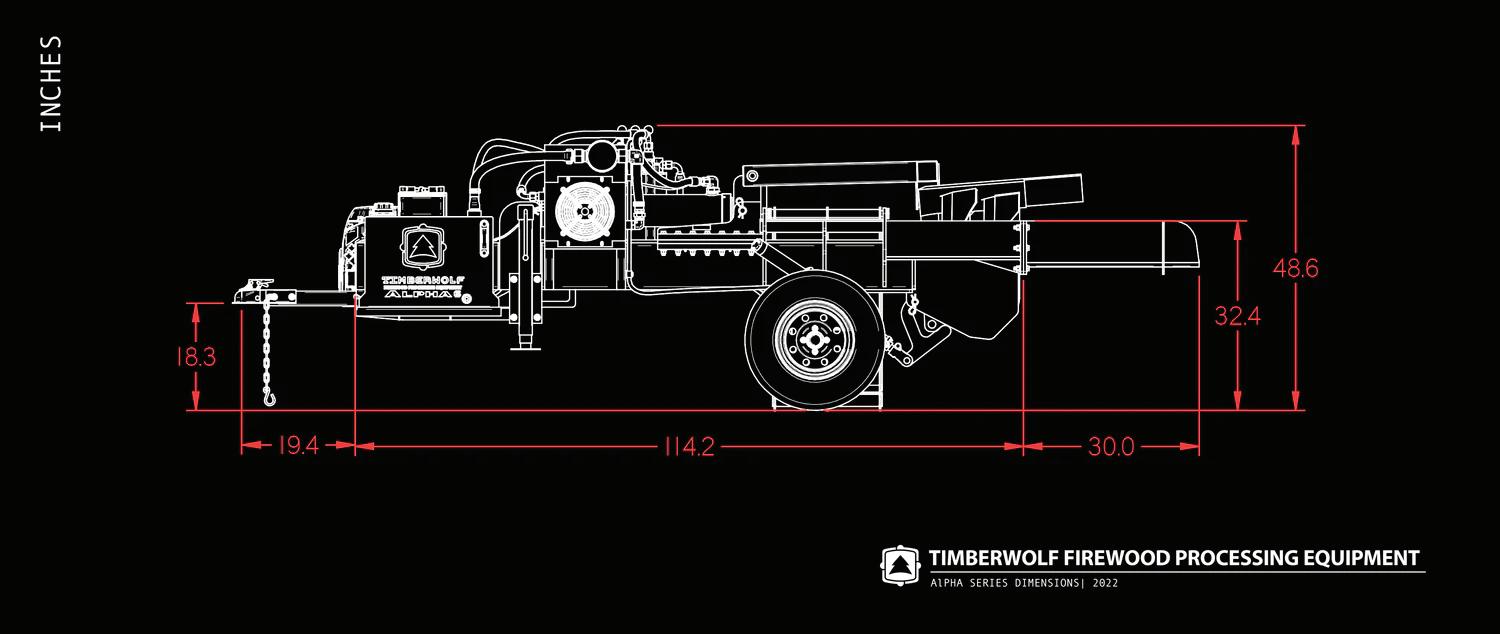 • Timberwolf’s top-of-the-line commercial box wedge splitter, the Alpha 6 is capable of outputting up to 2 cords of uniform-sized wood per hour.