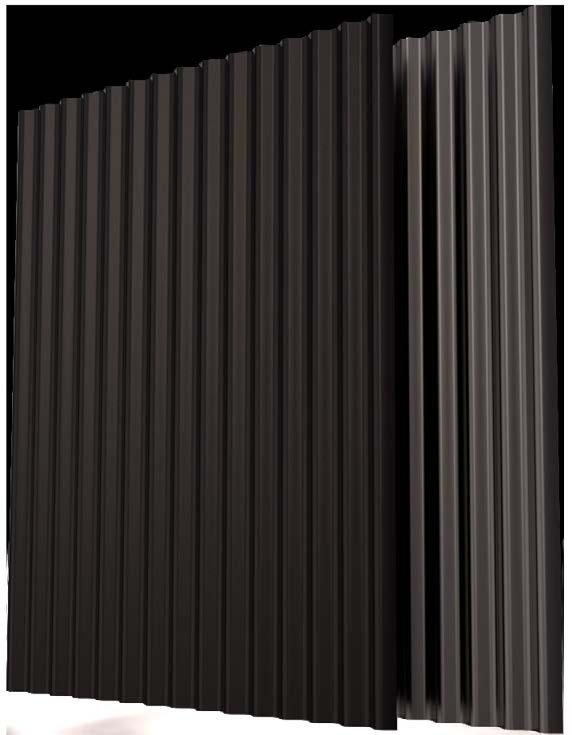 Our 7/8” Corrugated steel panels come in double-sided Black or double-sided Charcoal with our Perspectra Plus Series™ paint system with colour-matched fasteners for straightforward installation to deliver a seamless look from all angles.