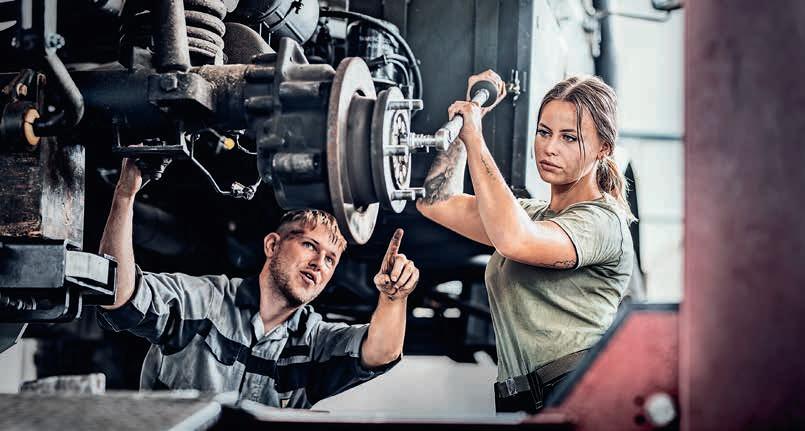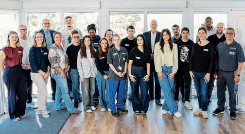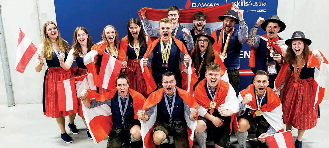 Zum Aushängeschild des österreichischen Teams bei den EuroSkills 2025 wurde Jonas Danninger (oben. 2. Reihe Mitte) aus Herzogsdorf: Der Kälteund Klimatechniker von Hauser in Linz holte nicht nur Gold, sondern mit der höchsten rot-weiß-roten Punktezahl auch noch die Auszeichnung „Best of Nation“. Leonie Tieber (oben, 2. Reihe 2. v. r.) vom ÖAMTC Steiermark triumphierte als erste Frau überhaupt in der Kfz-Technik: Die 24-jährige Paldauerin setzte sich gegen ihre rein männliche Konkurrenz durch – und wurde Europameisterin.