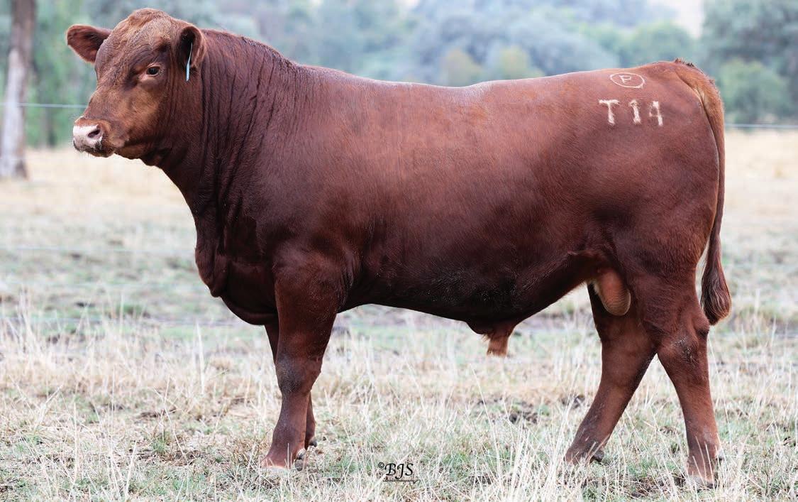 • Paringa Red Trademark T14 is a truly a remarkable Red Angus young sire. He is phenotypically tremendous, visually outstanding from all angles