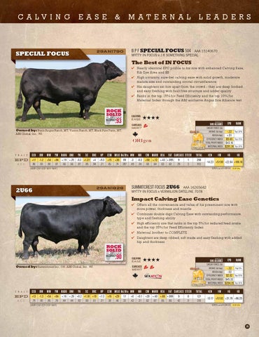 Nearly identical EPD profile to his sire with enhanced Calving Ease, Rib Eye Area and $B High accuracy, sure-bet calving ease with solid growth, moderate mature size and outstanding scrotal circumference His daughters set him apart from the crowd - they are deep bodied and easy fleshing with fault free structure and udder quality Ranks in the top 15% for Feed Efficiency and the top 10% for Maternal Index through the ABS exclusive Angus Sire Alliance test