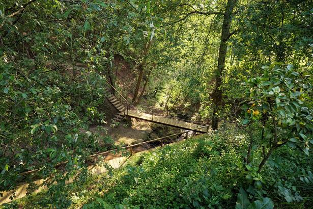 In this private estate there is the possibility of walking on the wooden walkways, enjoying the mini waterfalls that come from the stream that is inserted in the woods. All within the Estate.