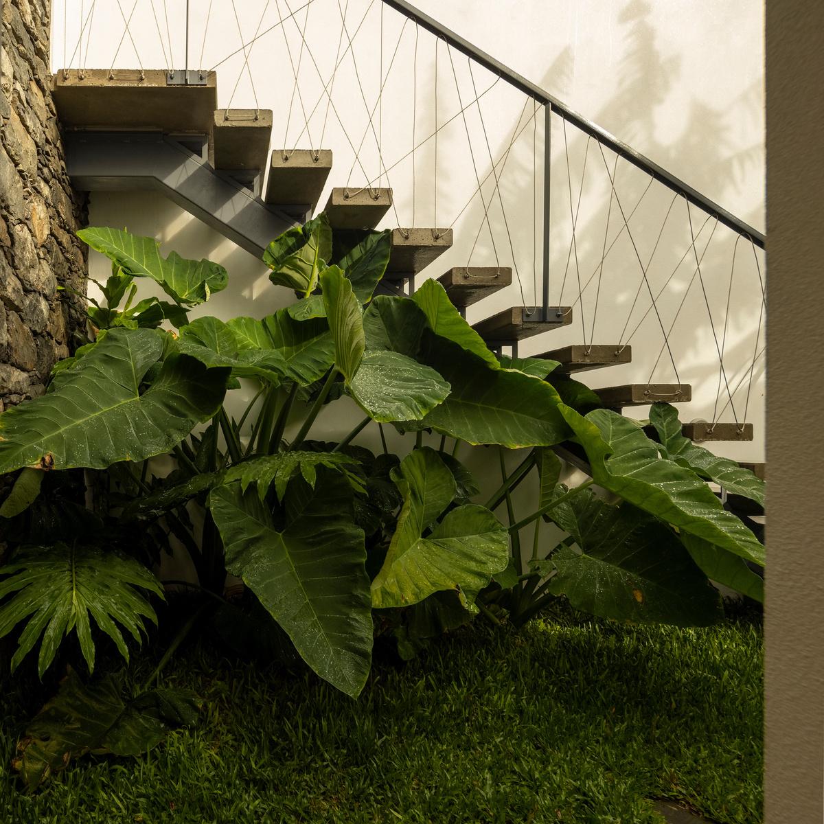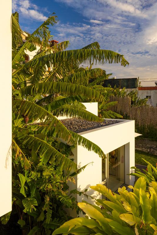 Casas da Vargem are located in a valley in Ponta do Sol, Madeira, characterized by a mix of small banana plantations and single family houses. A narrow road on the upper side of the terrain gives access to the inclined terrain 3 meters below, wich had 2 small stone storages in ruins. The scale of those storages, typical for the traditional construction in this area, were the basis for this project with 2 semidetached holiday houses. The storages were renovated and various new volumes with a similar size were organized sloping down the terrain, creating patios and gardens in between