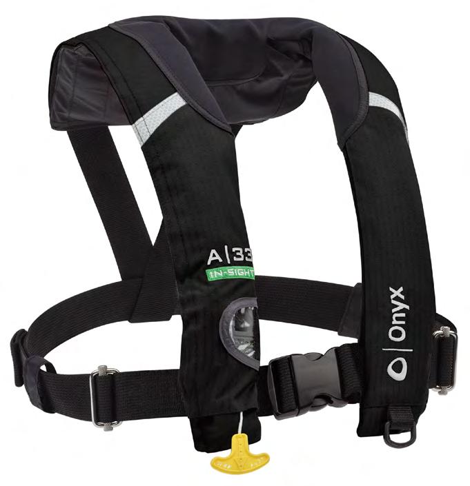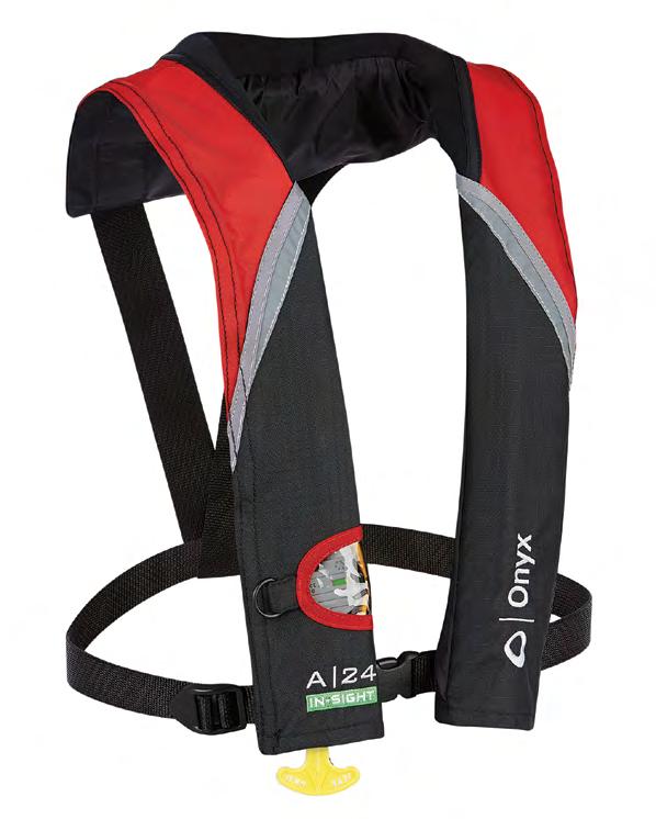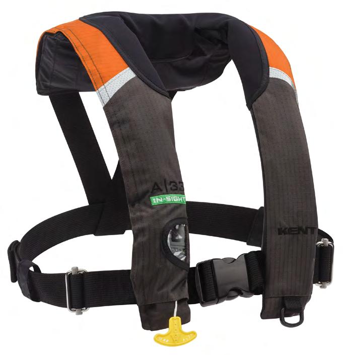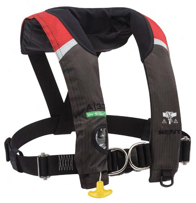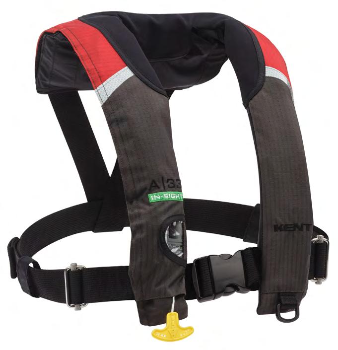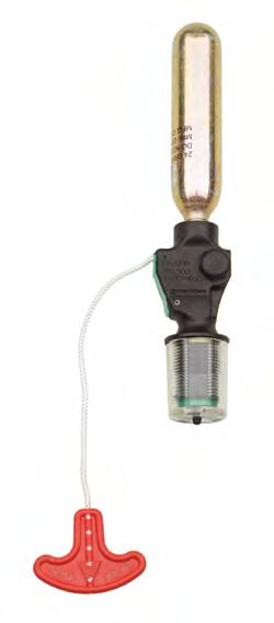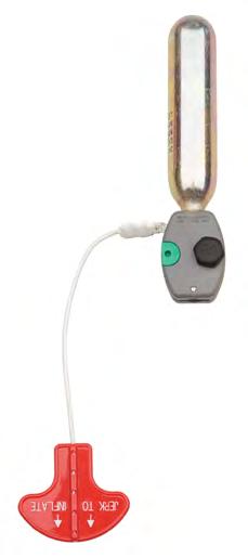 • Automatically inflates upon immersion in water or when the wearer pulls the “Jerk to Inflate” handle