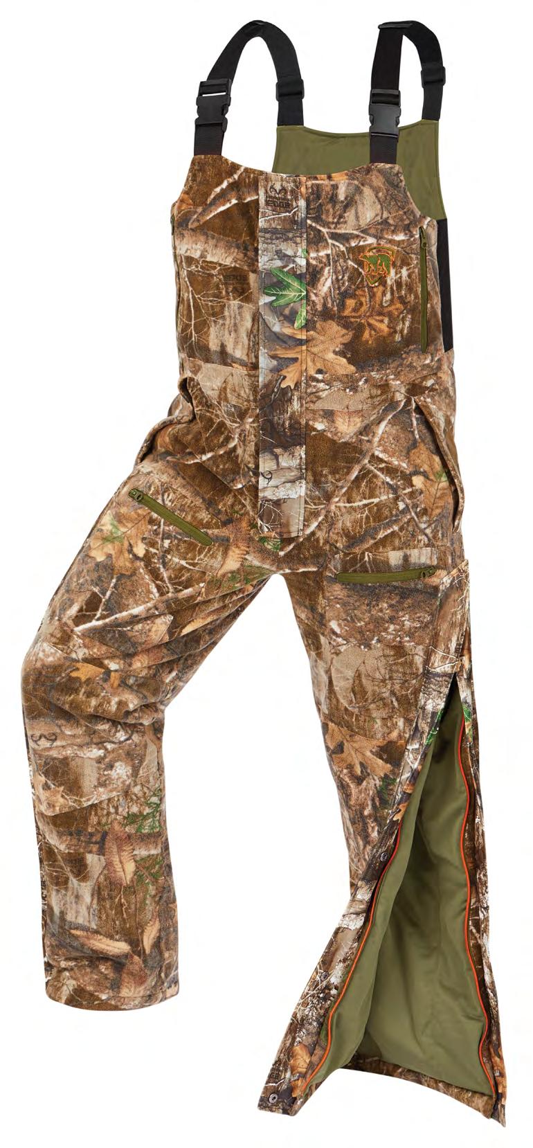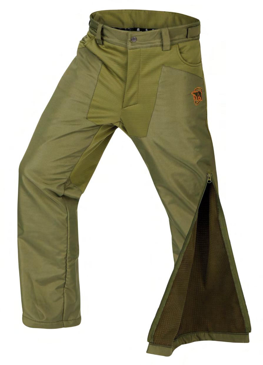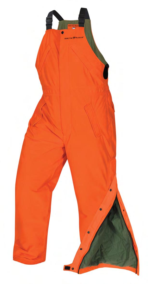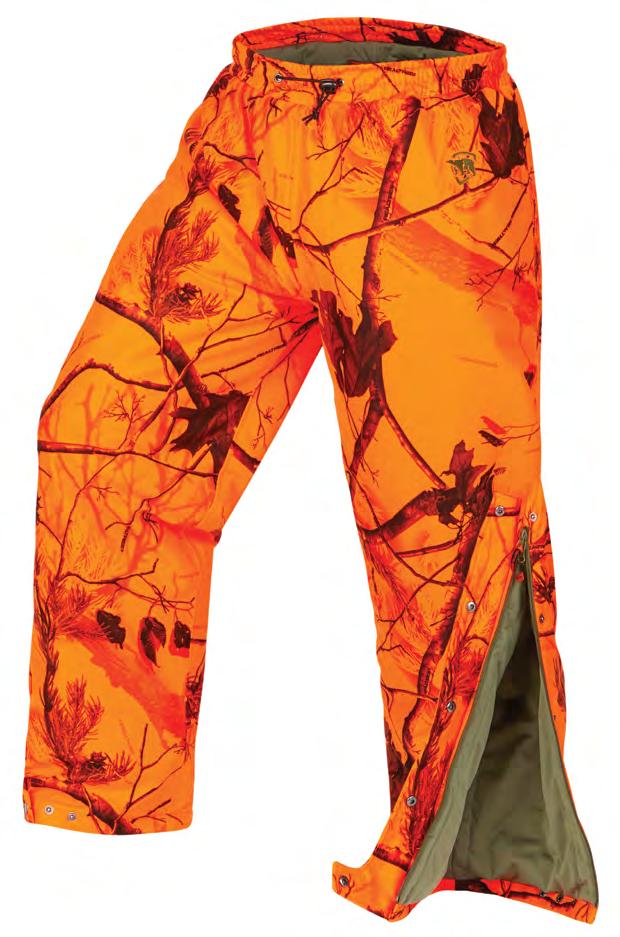 • Hip-high two-way leg zippers with storm flap with snap closure