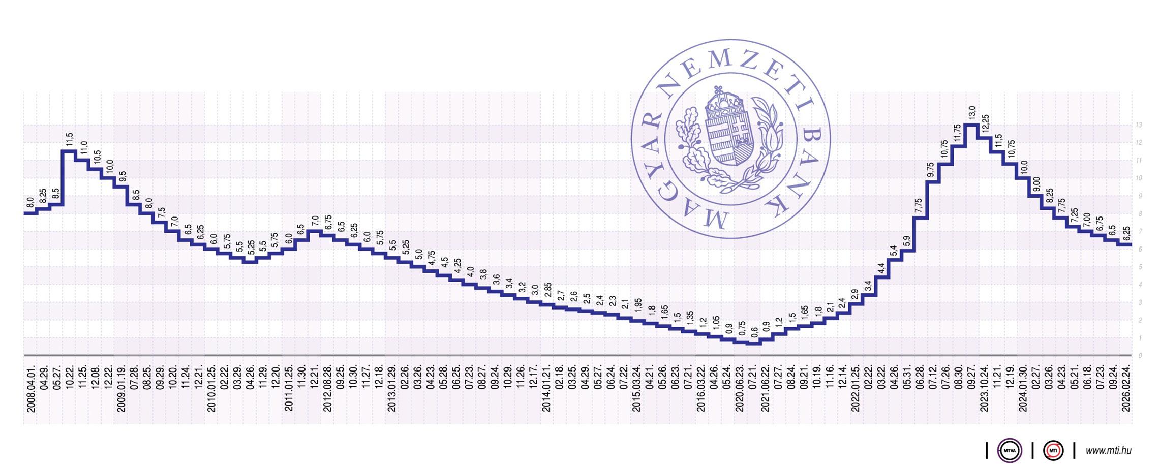 Trends in the MNB Base Rate (2008–February 24, 2026)