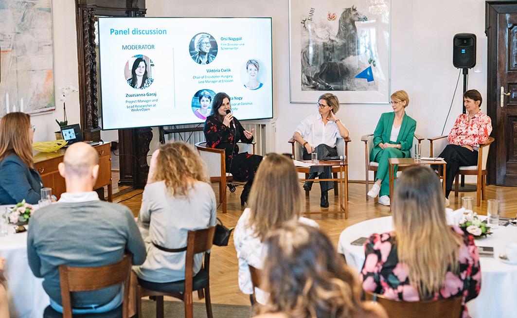 “Women’s rights are not only about equality, at their core, they are about human rights, democracy, and justice,” emphasized Diana Madunic, Ambassador of Sweden to Hungary, in her opening remarks at the International Women’s Day event jointly organized by SCCH and the Embassy of Sweden, and WeAreOpen (Nyitottak Vagyunk). The event celebrated the strength of women and explored how to break the glass ceiling. WeAreOpen CEO Nóra Várady noted how she often encounters the attitude that gender equality and the gender pay gap linked to it are considered “problems that were solved long ago.” However, when the pay gap is examined based on data, it becomes clear that significant differences still persist. Film director and screenwriter Orsolya Nagypál emphasized that in Europe and among streaming platforms, an increasing number of programs support female creators and help them gain opportunities to showcase their work and develop their professional skills. The challenges, however, have not disappeared. When a female director or producer asks for more funding for a project, her reasoning is often questioned, while similar requests from male colleagues are frequently explained simply by saying that they “have a vision.” Viktória Máté-Cselik, product development leader at Ericsson Hungary, highlighted the importance of confidence among female employees. She spoke about how their organization consciously supports this through roundtable discussions, networking opportunities, and mentorship programs. Beáta Nagy, a professor at Corvinus University of Budapest, presented findings from her new research examining the role of executive search firms in reproducing gender inequality. She pointed out that many organizations rely on headhunters to identify suitable candidates, yet during the selection process, women are often excluded when compiling the initial list of potential candidates. This is because they are perceived as a higher risk, which recruiters aim to minimize. She also spoke about the challenges women face in academia, noting that patterns similar to those seen in the business sector often appear in universities as well. The discussion was moderated by psychologist and researcher Zsuzsanna Garaj. “A lot also comes down to girl power,” added Márta Böddi, director at the SCCH, highlighting that in the pursuit of equality, it is important for women to support and uplift one another.