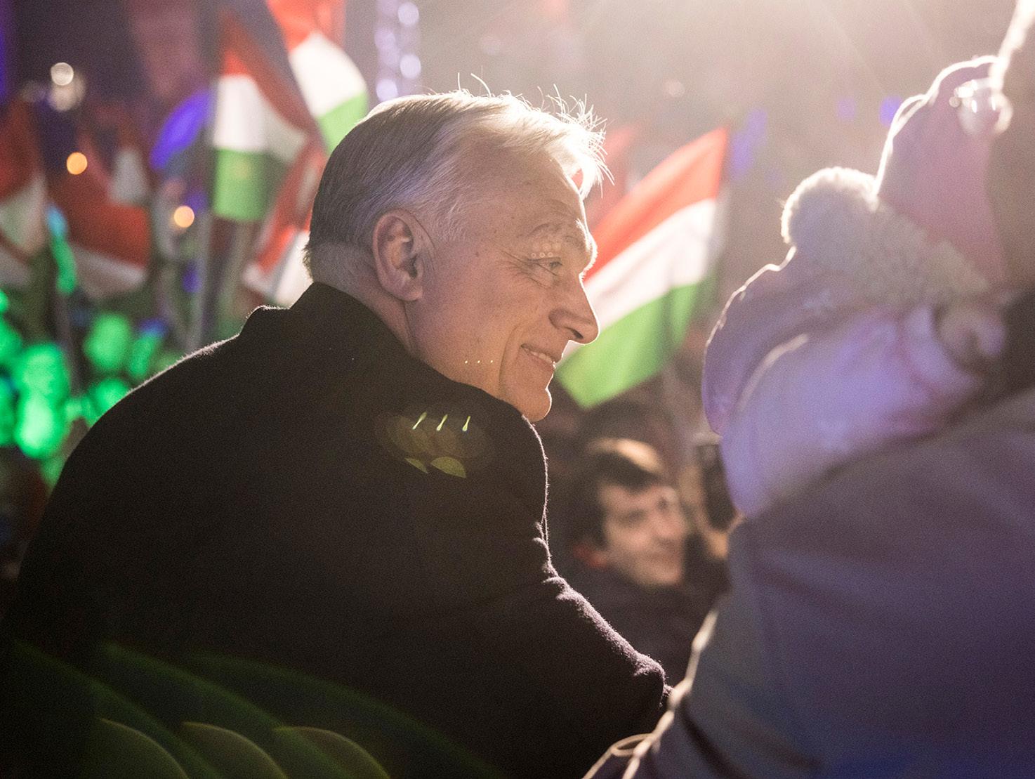 In a photo released by the Prime Minister’s Communications Department, Prime Minister Viktor Orbán is seen at Dózsa György tér in Dunaújváros on March 18, during a stop on his campaign tour of the country.