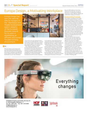 Europa Design has won the national title for Hungary in the “Workplace and People Development” award category of the European Business Awards for its work in establishing an efficient and humanfocused working environment. BBJ