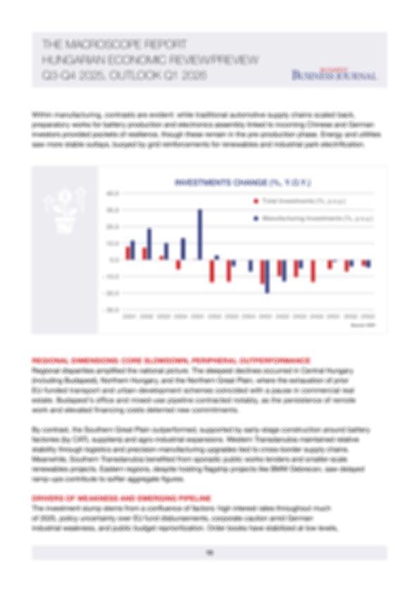 Industrial performance continued to decline for the third consecutive year in 2025, contracting by 3.5% (year-on-year). The weakest segments were vehicle and machinery manufacturing and electrical equipment production (mainly due to negative trends in battery production), while computer manufacturing provided the only positive contribution. Regional disparities remained significant, particularly within automotive clusters.