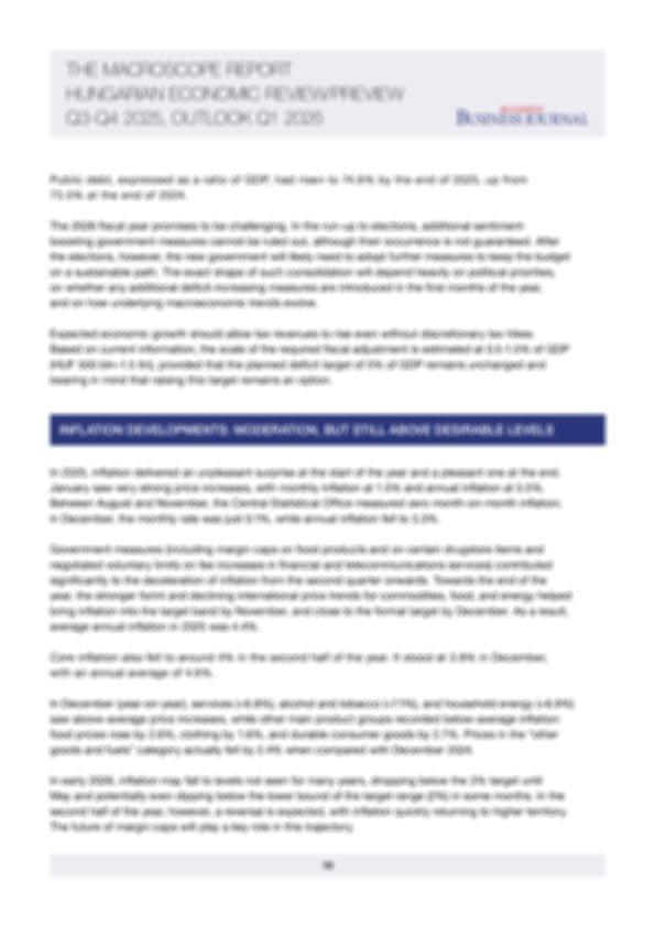 The trade in goods remained relatively stable, with exports rising by 1.1% and imports by 1.6% in the first 11 months of 2025, while service exports achieved a record EUR 9.3 billion surplus in Q1-Q3. The current account posted a nearly EUR 3 bln surplus over the first three quarters of 2025. The full-year external balance of the Hungarian economy remained in a comfortable surplus, a trend seen as likely to be repeated in 2026.