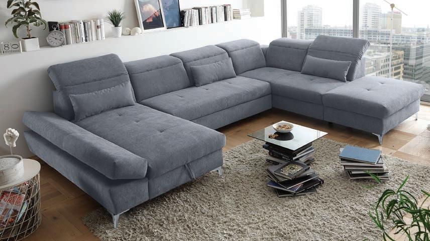 Verwandlungsecke, Bezug Uran anthrazit, Kunststofffüße, Nosagfederung, Stellmaß ca. 350x73/96x 245 cm, Liegefläche ca. 120x 300 cm, inkl. Kopf- und Armteilverstellung, Schlaffunktion, Bettkasten und Nierenkissen. 11700054/00 Inklusive Schlaffunktion & Bettkasten