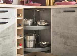 Das Topfkarusell nutzt den Platz in der Ecke optimal aus und schafft Stauraum für Töpfe und Co