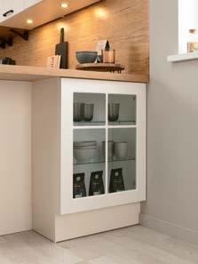 Natürlicher Flair in Magnolienweiß. Der Hingucker? Ein trendiger Vitrinenschrank für stilvolle Küchenmomente. Klassisch, gemütlich, und einfach ein Genuss!