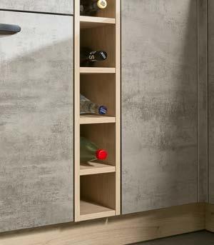 Die matten Oberflächen stehen in einer Vielzahl warmer Naturtöne zur Verfügung. Die essenziellen Zutaten sind im Apothekerschrank rasch griffbereit und übersichtlich angeordnet.