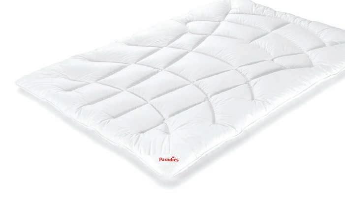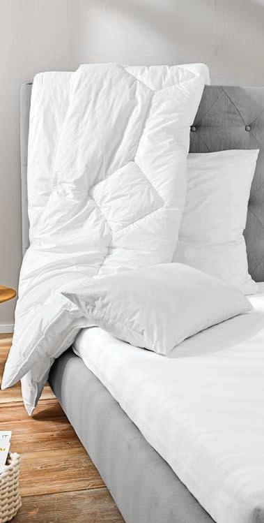 100% Bio-Baumwolle, mit Reißverschluss, Füllung Paradies Softys, 100% Polyester, B/L 40/ 80 cm, 470 g. 25.99 und B/L 80/80 cm, 940 g. 34.99 07450123/34,35 Bettdecke „Sinfonie Bio“ Bezug 100% Bio-Baumwolle, Füllung Paradies Fill, 100% Polyester, medium warm, B/L 135/200 cm, 1010 g. 69.99 07450123/27