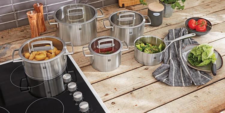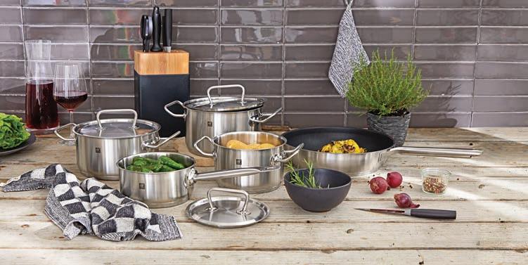 1 Besteck „Palermo“*, 60-tlg. Cromargan® Edelstahl rostfrei, bestehend aus je 12 Messern, Gabeln, Löffeln, Kaffeelöffeln, Kuchengabeln. 21850158/19 Besteck „Albany“ 79.99 Besteck „Albany“, 30-tlg. Edelstahl rostfrei 18/10, best. aus je 6 Messern, Gabeln, Suppen löffeln, Kuchengabeln, Kaffeelöffeln, spülma schinengeeignet, vollständig poliert. 16000006/00 Topfset, 5-tlg. 159.Topfset, 5-tlg. 139.Topfset „Vitality“, 5-tlg. Edelstahl 18/10, best. aus: 1 Kochtopf ø 16 cm / 2 l, 1 Kochtopf ø 20 cm / 3,5 l, 1 Kochtopf ø 24 cm / 6 l, 1 Bratentopf ø 20 cm / 3 l, jeweils mit Deckel, 1 Stieltopf ø 16 cm / 1,5 l ohne Deckel, hygienisch und geschmacksneutral, SIGMA Classic+ Sandwichboden, sehr gute Wärme verteilung und -speicherung über den ganzen Topfboden, massive Edelstahlgussgriffe für einen besonders langen „Stay Cool“-Griff, dicht schließender Glasdeckel mit Silikondichtung für energie sparendes und wasserarmes Sichtkochen, für alle Herdarten geeignet. 16000003/00 Induktionsfähig Induktionsfähig Edelstahl 18/10, best. aus: 1 Kochtopf ø 16 cm 3 l, jeweils mit Deckel aus Edelstahl, 1 Stieltopf ø 16 cm Classic Sandwichboden, sehr gute Wärmeverteilung und -speicherung, integrierte Füllskala, speziell geformter Schüttrand, Stay-Cool-Griffe, für alle Herdarten geeignet. MesserBlock*, 6-tlg. Messer-Block*, 6-tlg. 59.99 Besteck „Art“, 60-tlg. Edelstahl, bestehend aus je 12 Messern, Gabeln, Löffeln, Kaffeelöffeln, Kuchengabeln. 26630036/00 Besteck „Art“, 60-tlg. 69.99 Besteck „King“, 30-tlg. Edelstahl rostfrei 18/10, best. aus je 6 Messern, Gabeln, Suppen löffeln, Kuchengabeln, Kaffeelöffeln, spülma schinengeeignet, vollständig poliert. 16000005/00 Besteck „King“ 59.99 Topfset „Twin Classic“, 5-tlg. Edelstahl mattiert 18/10, best. aus: 1 Kochtopf ø 16 cm 6 l, 1 Bratentopf ø 20 cm Deckel, SIGMA Classic Sandwichboden, sehr gute Wärmeverteilung und -speicherung, integrierte Füllskala, speziell geformter Schüttrand, Stay-Cool-Griffe, für alle Herdarten geeignet. Besteck „Palermo“* 159.WIR WÜNSCHEN EINE SCHÖNE VORWEIHNACHTSZEIT! F4422 I 07Alles Abholpreise! *Aufgrund der aktuellen Situation kann es bei diesem Artikel zu Lieferverzug kommen.