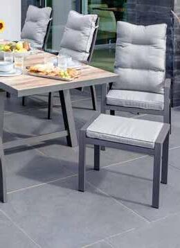 Garten-Serie, Alu-Gestell anthrazit, Textilen hellgrau oder anthrazit. Ohne Auflagen. 13500362/00-03,12--14,16, 13500577/04 1 Gartenstuhl, ca. 65x94x60,5 cm oder ca. 63x110x62 cm. je 149.- 2 Auszugstisch, mit 3D-Glasplatte, ca. 220-340x75x106 cm. 1299.- 3 Klappstuhl, ca. 68x110x60 cm. je 159.- 4 Hocker, ca. 53x44x57,5 cm. je 99.75 Ohne Abbildung: Gartentisch, ca. 160x75x90 cm. 469.-