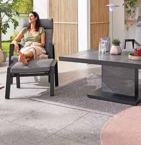 Sitzgruppe, Alu-Gestell anthrazit, Textilene anthrazit. Ohne Deko und Dekokissen. 13500996/05-09 Ausziehtisch, HPL Tischplatte, ca. 180-250x74x100 cm. Gartentisch, Ø: ca. 110 cm, H: ca. 75 cm. 375.- Gartenstuhl, je 139.- Gartenliege, ca. 200x35/105x66 cm. 375.775.- Ausziehtisch