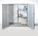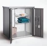 Terrassenschrank, silberfarben oder dunkelgrau metallic, feuerverzinktes Stahlblech, Doppeltür mit Gasdruckfeder, ca. 140x132x 52 cm. je 999.- oder ca. 140x132x87 cm. je 1099.- 14870008/00,01