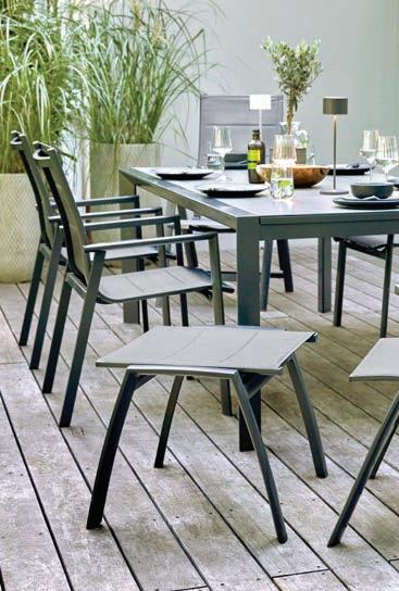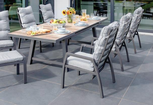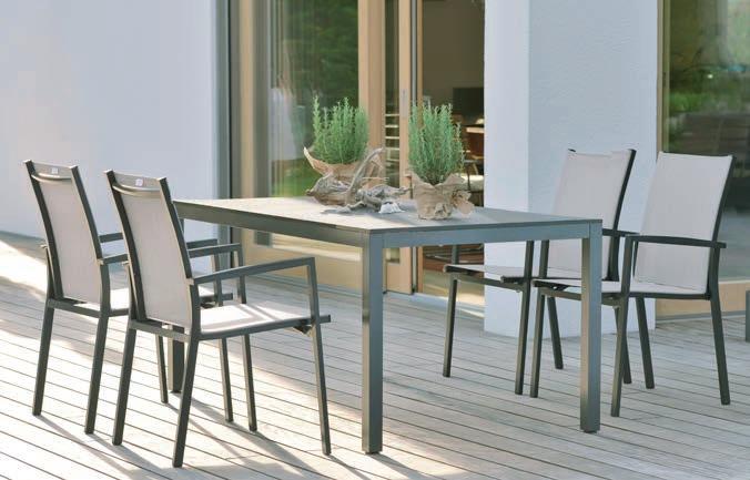 Gartenserie, Edelstahl-Gestell grau, HPL Tischplatte anthrazit. Ohne Deko. 13500996/00-04
